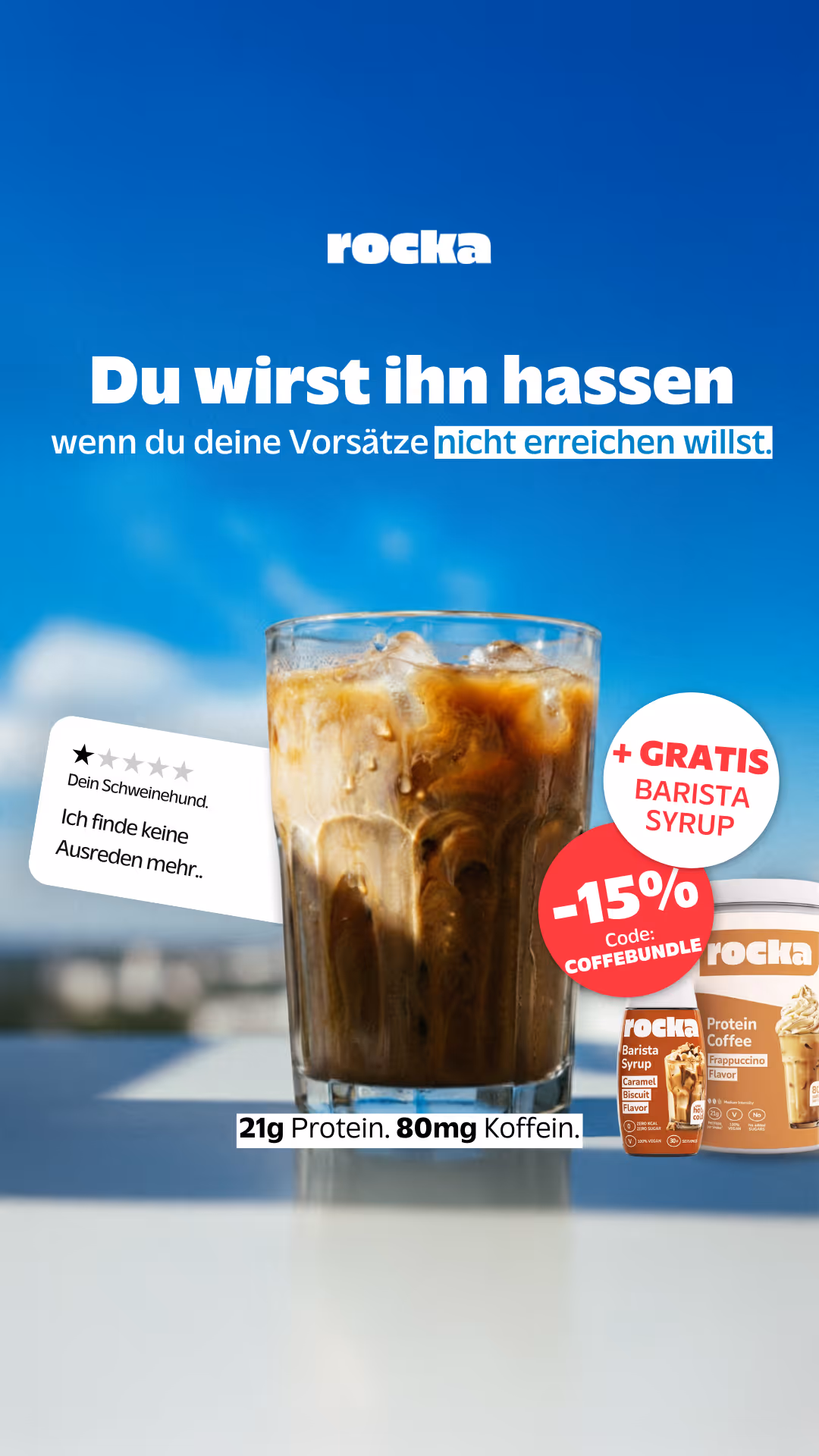 Produkte & Bundles, die direkt konvertieren. z. B. Coffee Protein + gratis Coffee Sirup oder Matcha Latte. Auf die Zielgruppe zugeschnitten, ohne Rabatt-Schlachten.